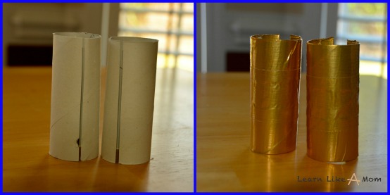 Step Two: Wrap the toilet paper rolls with duct tape.