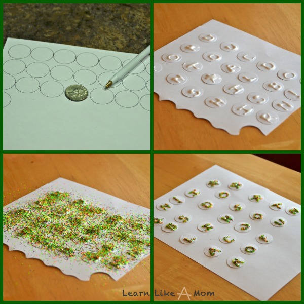 5. Sprinkle the circles with glitter and shake off the excess. Allow them to dry completely.
