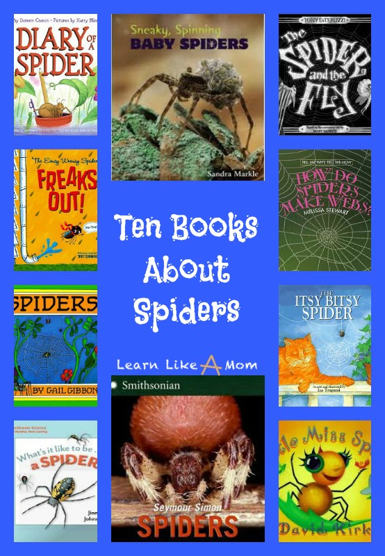 I rounded up ten books about spiders. Even those with arachnophobia might be able to enjoy these. Children often enjoy learning about creepy, crawly things, so even if you shudder at the thought of a spider, reading these books to your kids may do no harm. If spiders aren’t your thing, you may enjoy reading books about Halloween, pumpkins, or The U. S. Constitution instead.