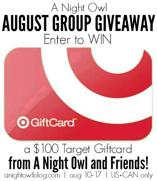 Hi friends! Today the friends of A Night Owl are joining up to bring you an amazing $100 Target Gift Card Giveaway! And we all KNOW you love Target, so what are you waiting for? Enter today via the Rafflecopter form below!
