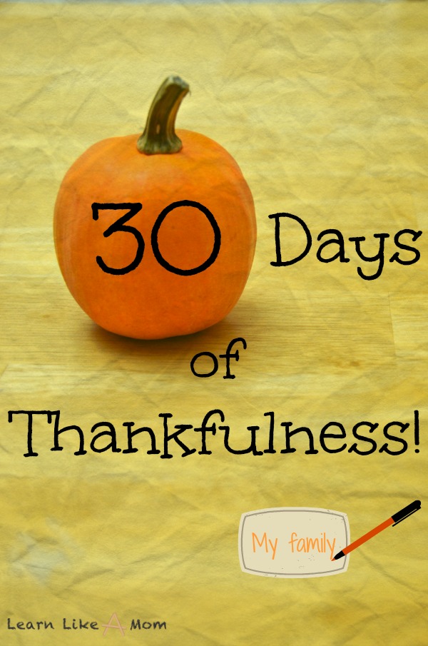 Thanksgiving will be here before we know it! If you’re like us, you have an extra pumpkin around the house right now. I’d like to challenge you to Thirty Days of Thankfulness for the month of November. By the end of the month, you’ll have one thankful pumpkin on display to kick off the holidays! You’ll also have a family that realizes they have much to be thankful for!